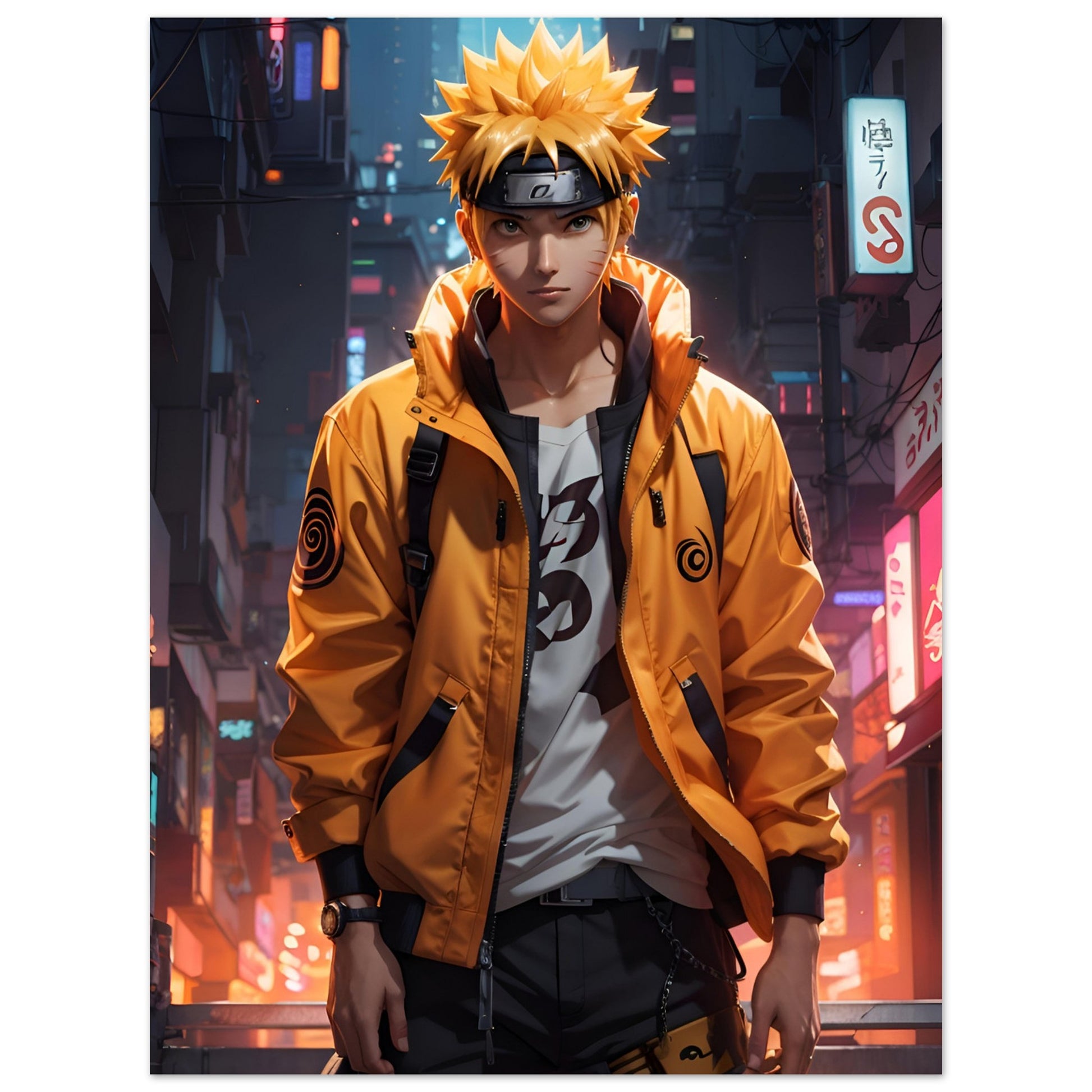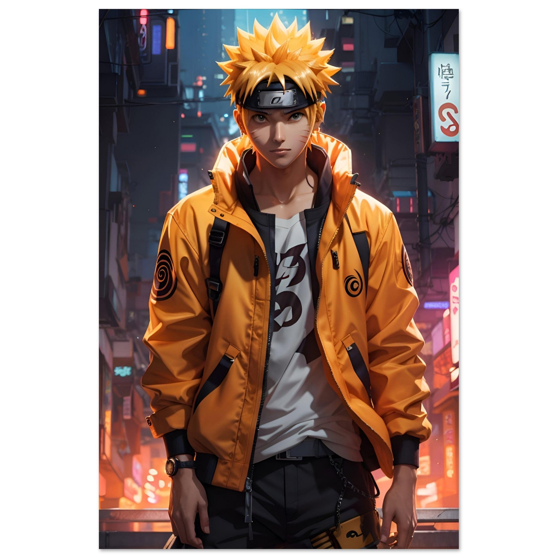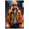 Naruto Uzumaki in einer Cyberpunk-Welt - Aluminiumkunstwerk